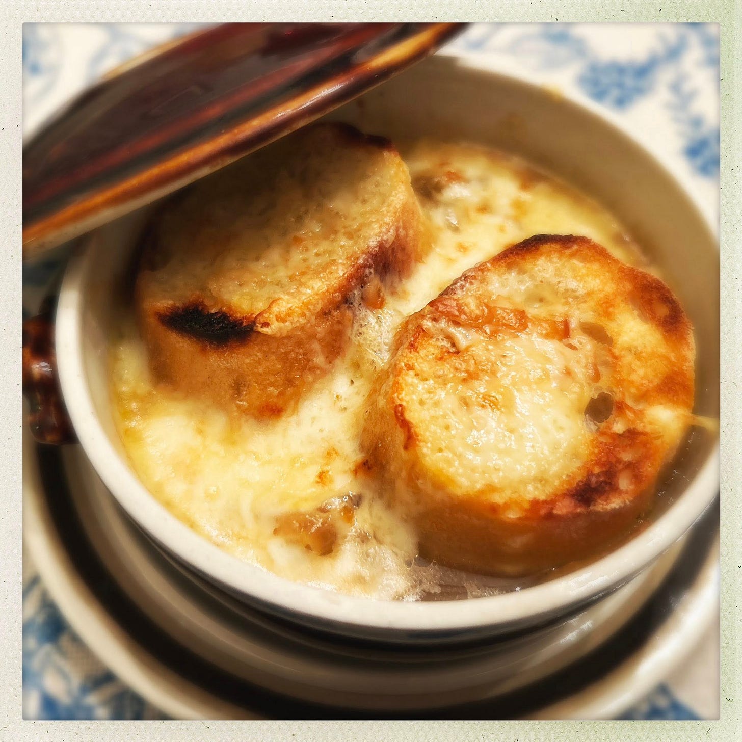 I’d taken up the vegetarian diet by then, so I talked to Madame beforehand to make sure it would be ok for me to eat there. The restaurant did accommodate me with some entrée which was unmemorable, but the French onion soup and the chocolate mousse were a dream. (I’ll talk about the mousse in another post.)